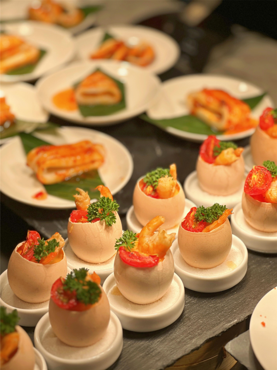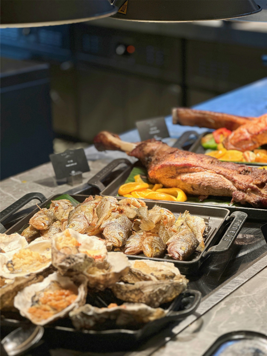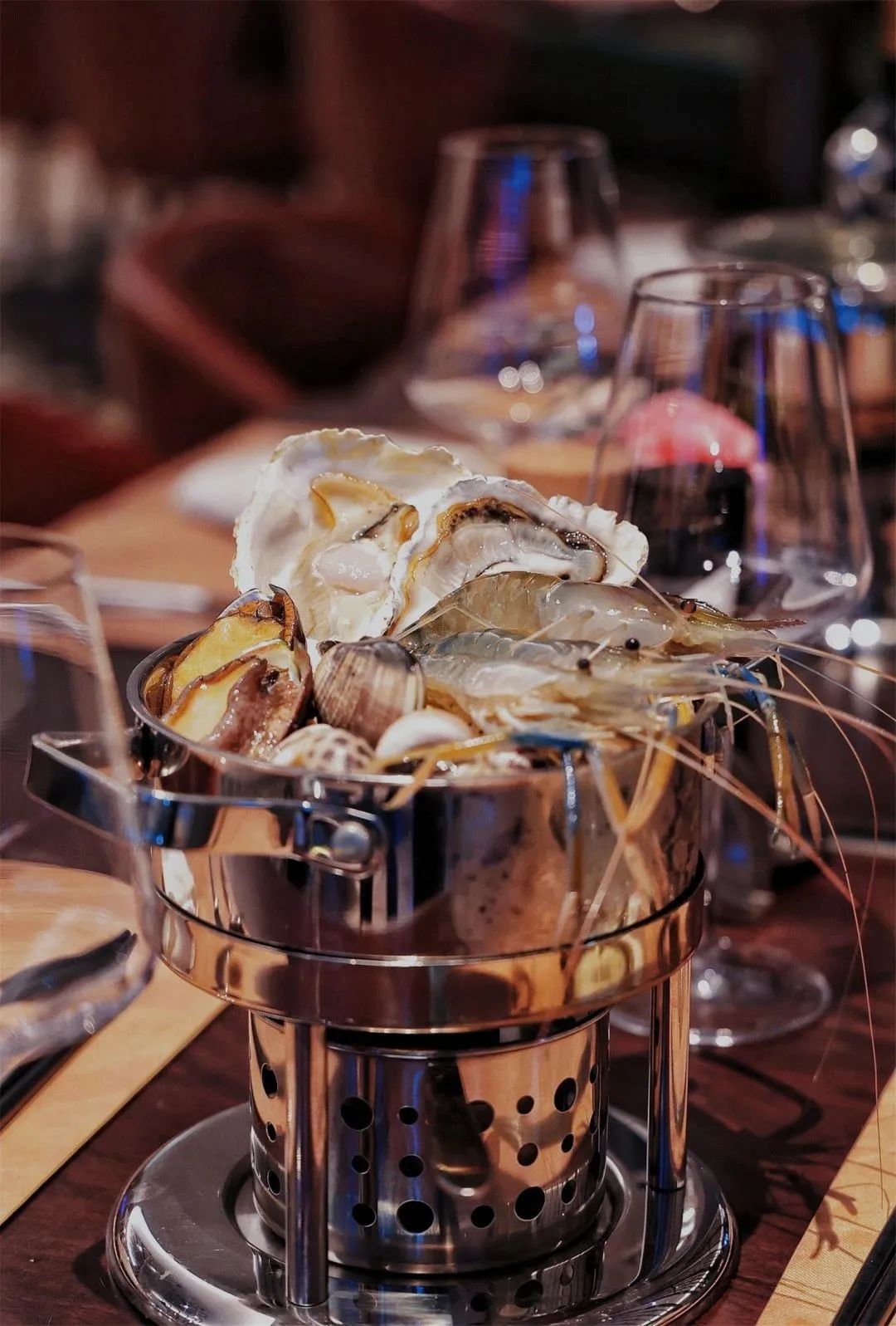 花胶老鸡炖澳洲鲍鱼、吉拉多生蚝、高汤汆象拔蚌、火焰扇贝配鱼子酱、盐焗海螺 、蒜蓉黄金贝、榴莲芝士焗扇贝、金蒜烤大连生蚝、蜂窝脆皮鲍鱼、圣子王蒸水蛋、辣酒煮花螺、泰式香炒舟山贻贝、