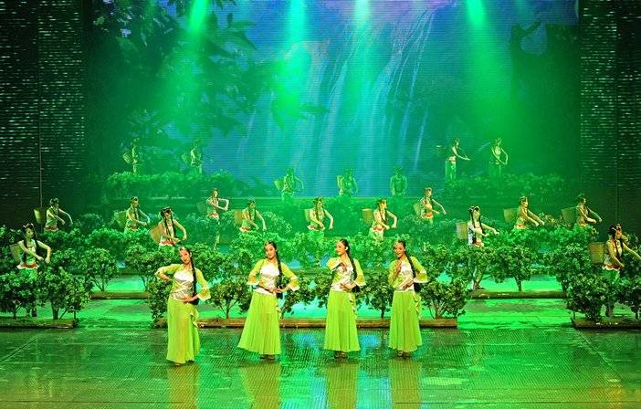 歌舞剧用声、光、电科技手段和舞台机械、以出其不意的呈现方式演绎了良渚古人的艰辛、宋皇宫的辉煌、岳家军的惨烈、梁祝和白蛇许仙的千古绝唱,把丝绸、茶叶和烟雨江南表现的淋漓尽致,颇具视觉体验和心灵震撼。
