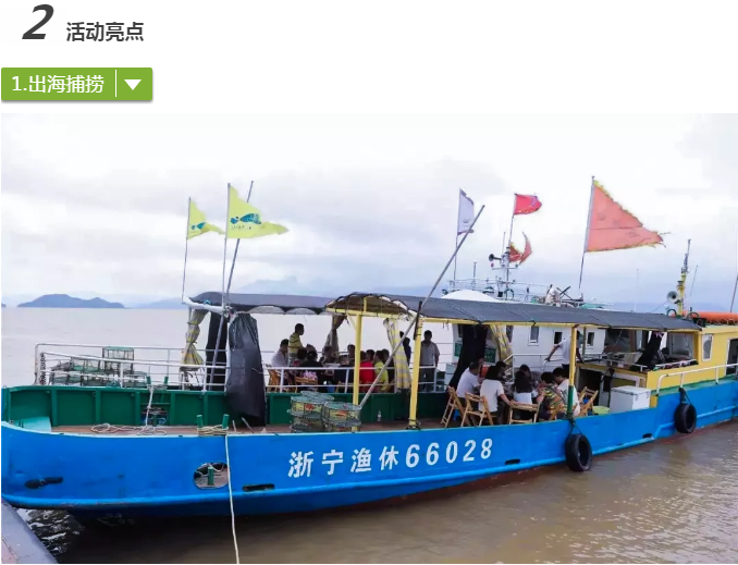早餐后,车赴【宁海湾——横山岛】(自理:体验型项目,收取船费+门票100元/人。游览时间不少于90分钟)码头,安排极富经验的渔老大,从码头上渔船出海,按每10人一艘船安排,航行2-3海里,选择集中海域一起收网捕鱼,体验渔民捕鱼的生活后登入强蛟群岛12岛之一,岛上有镇福庵,原分前后二殿,基为明代所建,梁柱为清代造型,号“小普陀”,岛上茂林修竹,郁郁苍苍,清幽雅静,有700多年的桑树和芙蓉树。中午前往餐厅品尝海鲜餐,中餐后前往网红打卡【骆家坑村】(游览时间不少于60分钟)濒临宁海湾,坐落于长山岗上,风景优美,发展乡村旅游有着独特的山海资源优势。青黛的山坡、宁静的海滩、旋转的风车、洁美的步道,一轴原生态的山海乡村风情,漫步浪漫海滨栈道听浪花拍岸看山峦层叠。特色泡泡屋基地,悠闲喝茶,品味美小吃,观海景;适时结束行程返程!