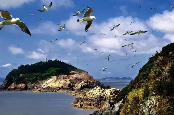 海岛四周的岩石,由于长年海浪冲击拍打,成浪蚀崖穴,千姿百态。