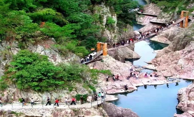 早上7:30打铁关A出口集合出发前往磐安(车程约2.5小时),抵达磐安后农家乐用中餐,稍作休息后游览国家AAA级景区【灵江源森林公园】(门票已含,游览时间不少于2小时)景区内自然旅游资源丰富,峡谷植被茂密、溪流潺潺、瀑布连连、奇峰怪石,孕育了自然界“峰奇、壁绝、谷幽、瀑多”的独特景观。景区内有华东第一高空观景玻璃桥,桥面长度368米,垂直高度188米。新增玻璃跳台,桥面长度368米,垂直高度188米,玻璃悬廊外跳158米,垂直高度268米;后游览榉溪孔氏古村落(游览时间不少于1小时)孔子第47代孙孔端躬公见榉川高山峥嵘,民风淳朴,是隐居之胜地,就寓居于此,繁衍生息,并开办学堂,教育孙邻。自此以后,孔氏子孙,蕃衍甚盛,成为婺州南孔的文化中心,孔子第三圣地。结束后入住农家乐。