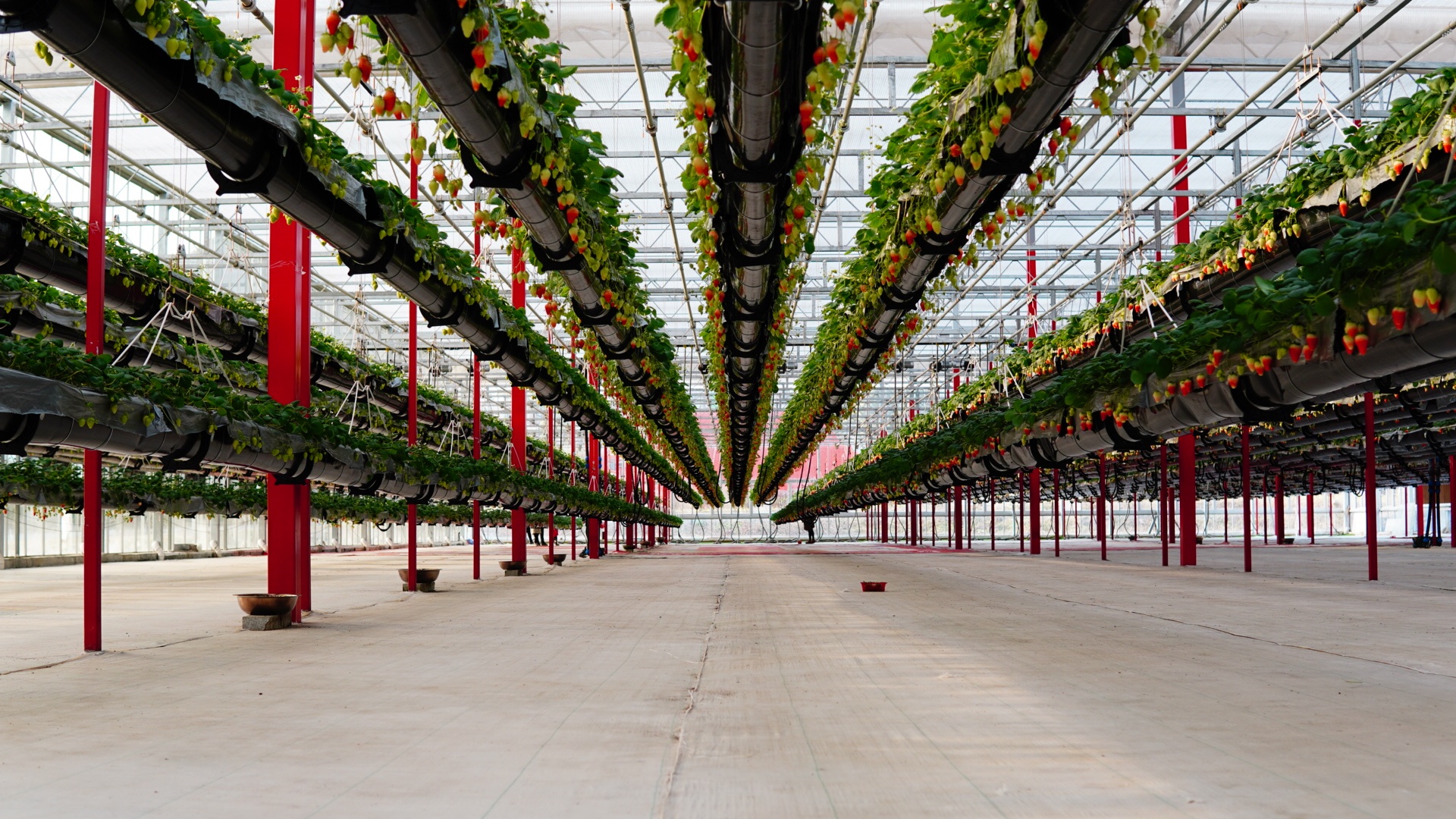 2、打卡网红草莓天空之城采摘品尝鲜美草莓