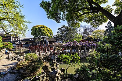【拙政园】拙政园是中国四大名园之一,位于江苏省苏州市姑苏区东北街。它是苏州最大的古典园林,占地面积约4.1公顷。拙政园始建于明正德初年(16世纪初),是江南古典园林的代表作品。园内山水萦绕,厅榭精美,花木繁茂,具有浓郁的江南水乡特色。园中的布局和建筑风格充分体现了中国古代园林艺术的精髓,展示了中国传统文化的博大精深。拙政园与北京颐和园、承德避暑山庄、苏州留园一起被誉为中国四大名园,是中国古代园林艺术的珍贵遗产。